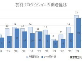■YouTube台頭と独立志向、芸能プロ苦境、2025年1~9月16件倒産 東京商工リサーチ(TSR)がまとめた2025年1~9月の芸能プロダクション倒産状況によると、倒産件数は16件(前年同期20件、20.0%減)… -