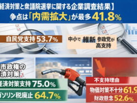 東京商工リサーチ(TSR)は2月3日、経済対策と衆議院選挙に関するアンケート調査の結果を発表した。調査は1月30日から2月2日にかけて実施され、2,218社から有効回答を得た…