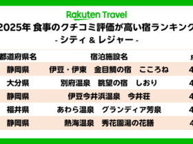 楽天グループ<4755>(東証プライム)は10月2日、旅行予約サービス「楽天トラベル」において「2025年 食事のクチコミ評価が高い宿ランキング」を発表した。集…
