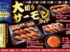 KOZOホールディングス<9973>(東証スタンダード)傘下の小僧寿しは2月20日、持ち帰りすし店「小僧寿し」にて期間限定の『大切り!サーモンフェア』の開催…
