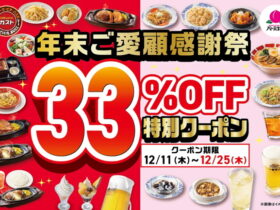 すかいらーくホールディングス<3197>(東証プライム)は12月11日、グループ傘下のガストとバーミヤンで「年末ご愛顧感謝祭クーポン」キャン…