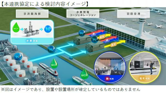 日本空港ビルは、2030年度CO2排出量を2013年度対比46%削減し、2050年ネットゼロを目指す長期ビジョンを掲げている。ENEOSも、水素事業を加速し、有機ハイドライドを用いた水素サプライチェーンの構築を検討している。