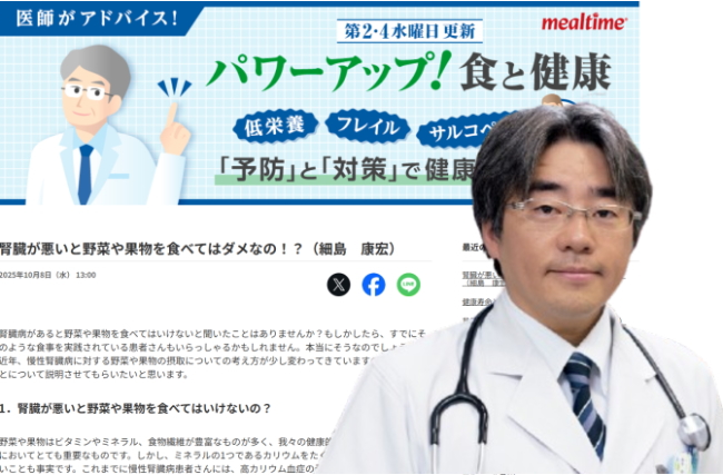 ファンデリー、新潟大学大学院医歯学総合研究科の細島康宏氏が慢性腎臓病に対する野菜・果物の摂取の考え方を紹介、Webメディア「パワーアップ!食と健康」を配信