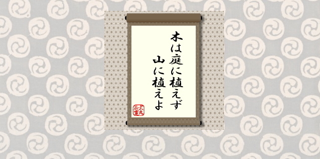 「木は庭に植えず山に植えよ」。気に入った苗木を買って身近な庭に植えると、毎日眺めて「まだ大きくならないのか」と気をもむばかりになる。ところが山に植えた場合、常に見ることはできないため、時折訪れてみると、いつの間にか大きく育っていることに気づく。大事なものを育てるには、ゆったりとした気持ちで臨むべきだという教えである。