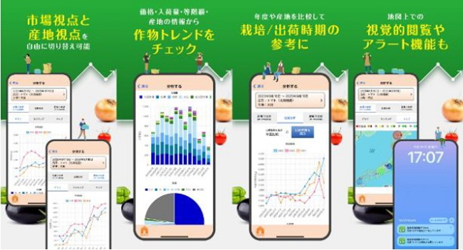 同アプリは、同社が2023年に立ち上げた農業情報サービス「つなあぐ(R)」の一部として提供されており、野菜・果物の卸売市場取引情報をグラフや図表で可視化することで高い利便性を得ていた。近年は、生産者間で「いつ」「どこで」「いくらで売れているか」といった価格や競合への分析需要が高まっており、これまで存在しなかった多角的な市況分析機能の開発が求められていた。住友化学はそのニーズに応える形で、市況データを自在に比較・分析できる独自プログラムを導入した。