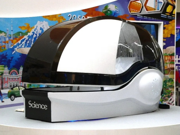 ミライ人間洗濯機は「大阪ヘルスケアパビリオン」で展示されたサイエンス社の最新技術「ミラブル」を搭載する装置で、ウルトラファインバブルとマイクロバブルにより石鹸を使わず洗浄できる点が特徴だ。加えて、背面センサーで心拍などを計測し、AIがストレスや疲労度を解析。大型ディスプレイ映像や軟骨伝導音楽によって最適な癒し環境を演出する。さらにバイタルデータを日常的に蓄積し、健康状態のモニタリングや未病の早期発見に役立つ仕組みを備える。