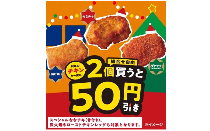 - セブン‐イレブン、チキン2個購入で50円引き、12月7日から5日間限定セール