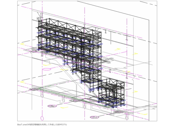 建設業界では工事前のBIM提示が定着しつつあるが、内部足場は障害物が多く、細かな部材調整を伴うため複雑化する課題があった。従来のBooT.oneは外部足場には対応していたものの、内部足場特有の要件を十分に満たしておらず、ゼネコンから内部足場のBIM活用要望が増加していたことが今回の共同開発の背景にある。新機能はSUGIKOの次世代足場「アルバトロス」にも対応し、支柱やステージ、壁つなぎの自動配置、直感的なドラッグ&ドロップ操作など多彩な機能を備える。