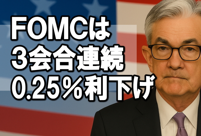 米連邦準備制度理事会(FRB)は、12月10日の連邦公開市場委員会(FOMC)で0.25%の利下げを決定した。9月、10月のFOMCに続いて3会合連続で0.25%の利下げを実施したことになる。
