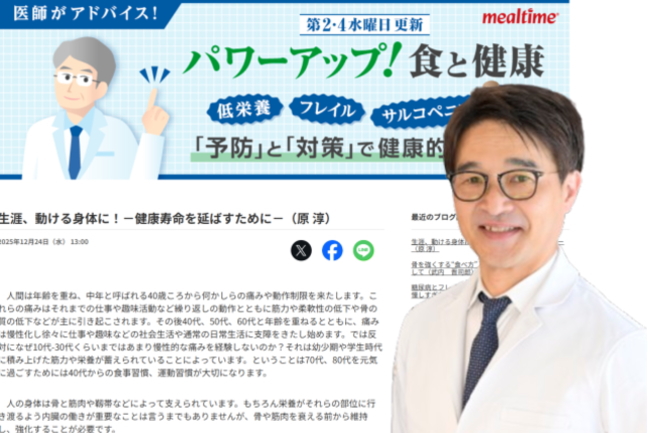 同社は、フレイル・サルコペニアを予防し、健康寿命を延伸するための食生活について医師が解説する「パワーアップ!食と健康」を運営している