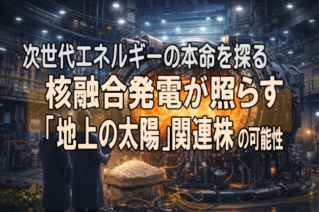 再生可能エネルギーの次を見据えた次世代エネルギー分野では、実用化への距離が縮まりつつある核融合発電が、ディープ・テックの中核テーマとして存在感を高めている。エネルギー安全保障と脱炭素を同時に満たす技術として、関連株の中長期評価を見直す動きも出始めた。