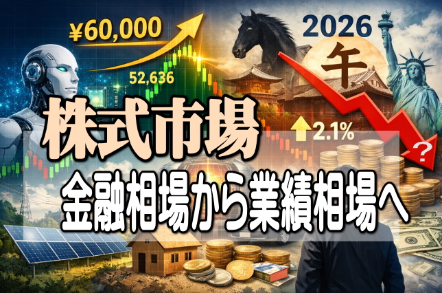 2025年、日経平均株価は史上最高値を更新し、日本株は歴史的局面を迎えた。市場では、2026年を前に「辰巳天井、午尻下がり」という干支格言への警戒が強まる一方、AI関連株の再浮上や金融政策の転換を背景に、6万円大台への期待も根強い。金融相場から業績相場へ移行する過程で、日本株の真価が改めて問われている。