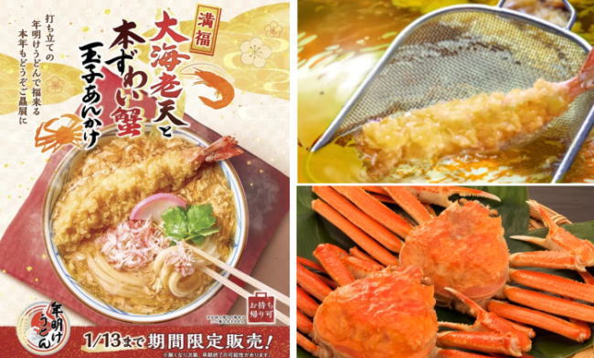 - 丸亀製麺、新春限定「年明けうどん」発売、大海老天と本ずわい蟹を豪華に使用