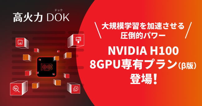 さくらインターネット、「高火力 DOK」でH100を8枚専有、新GPUクラウドプラン開始