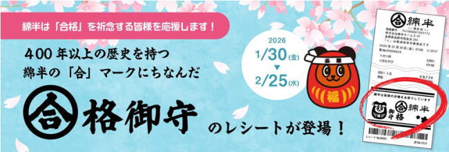 綿半ホールディングス<3199>(東証プライム)グループの綿半ホームエイド(長野県長野市)は、受験シーズンに合わせ、「合格祈願」をテーマにした限定デザインレシートの発行を開始した。期間は1月30日から2月25日までとなる。