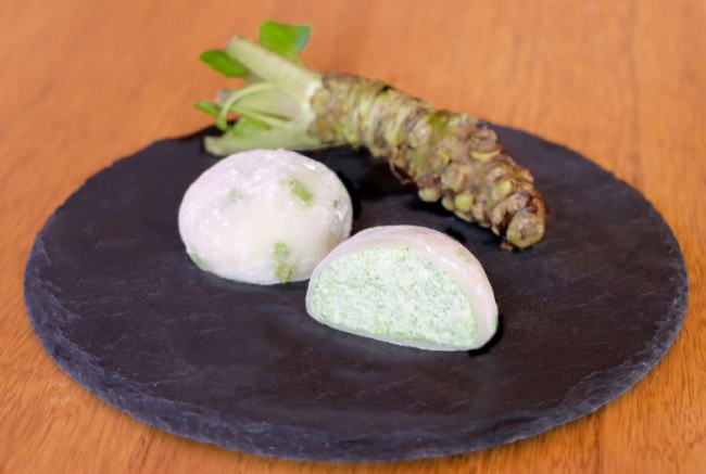 使用するわさびペーストと葉わさびは、全国的にも知られる安曇野の観光名所・大王わさび農場の原料を採用した。和菓子の伝統的な味わいにわさびの刺激を合わせた“ネオ和菓子”として、新たな味覚体験を提供する。