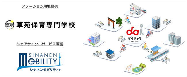 シナネンホールディングス<8132>(東証プライム)の子会社で、シェアサイクル「ダイチャリ」を展開するシナネンモビリティPLUS(東京都品川区)は、草苑保育専門学校(東京都豊島区)の敷地内にシェアサイクルステーションを設置し、2月9日より運営を開始した。
