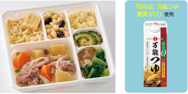 同商品は主菜の豚肉と根菜の五目煮に「日の出 万能つゆ 糖質ゼロ」を使用することで、エネルギーを約55%カット※2した。砂糖の使用量を大きく抑えながら、つゆに含まれるかつおぶしや昆布、きのこなどのうま味の相乗効果を生かした味わい深い一品に仕上げた。大きめにカットした大根は、かんだ瞬間に万能つゆのだしが広がるようやわらかく調理している。今後も『ミールタイム』は、エネルギーや糖質が気になる人に向けた魅力的な商品を提案していく方針である。