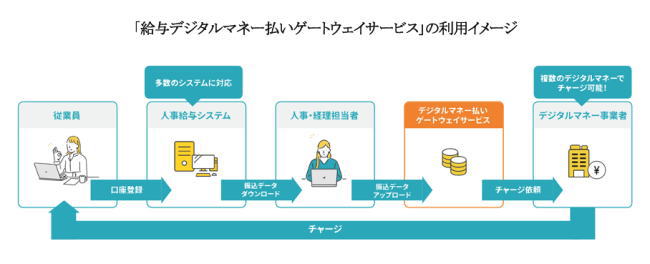 少子高齢化に伴う労働人口減少を背景に、多様な働き方への対応が求められている。2023年4月の労働基準法施行規則改正により給与デジタルマネー払いが解禁され、従業員の同意を前提に厚生労働省指定の資金移動業者を通じた支払いが可能となった。MJSは同年から全銀協ファイルを活用した同ゲートウェイサービスに対応しており、利用企業は対応する資金移動業者を選定し契約を締結することで、既存システムの改修なしに導入できる。