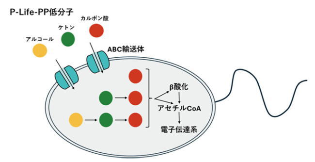 研究では、P-Life含有PPの分解菌についてゲノム解析を行い、さらに熱処理で得た低分子化合物を炭素源としてRNA-Seqによる遺伝子発現解析を実施した。その結果、β酸化経路などを用いた代謝分解が行われていることを明らかにした。これにより、難分解性ポリオレフィン系プラスチックの微生物分解効率化に向けた重要な知見が得られた。