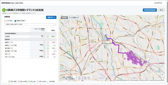 背景には、交通弱者対策やカーボンニュートラル対応、運転士不足など、自治体が抱える複合的な課題がある。前橋市では、人口動態や移動需要の変化を踏まえた路線再編の検討において、施策効果を裏付けるデータの不足が課題であった。これに対し同社は、定時定路線型交通とデマンド型交通を組み合わせた国内初のシミュレーション技術を構築し、計画策定に適用した。