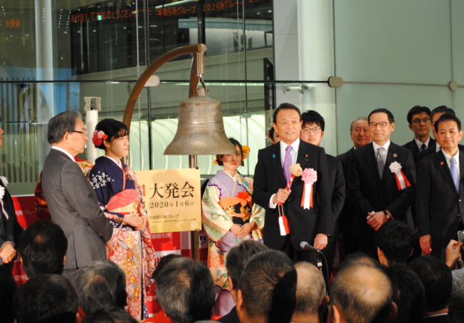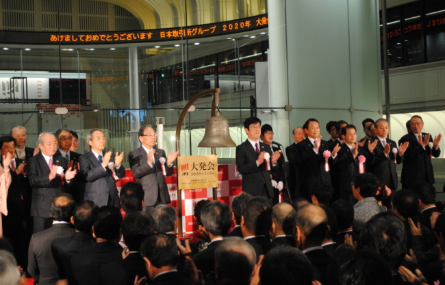 2020年1月6日(月)、日本取引所グループ(JPX)は東京証券取引所で新年恒例の「大発会」を開催した。日本取引所グループの清田瞭最高経営責任者をはじめ、ゲストには麻生副総理兼金融担当大臣や、証券業界・一般参加者などが出席。麻生大臣と晴れ着姿の女性たちが恒例の鐘を鳴らし、取引開始後は撮影に応じていた。株式市場は、米軍によるイラン革命防衛隊の司令官の殺害を受けて米国とイランの対立が激化するとの懸念から336円86銭安の2万3319円76銭で取引を開始し、会場はため息につつまれた。